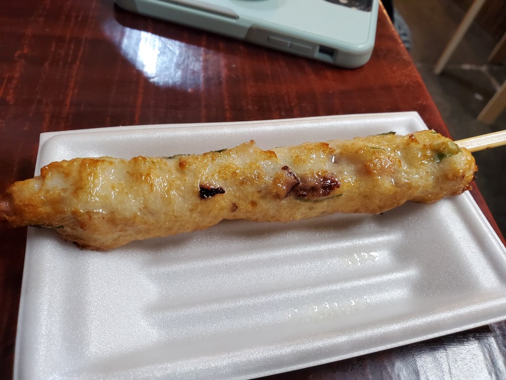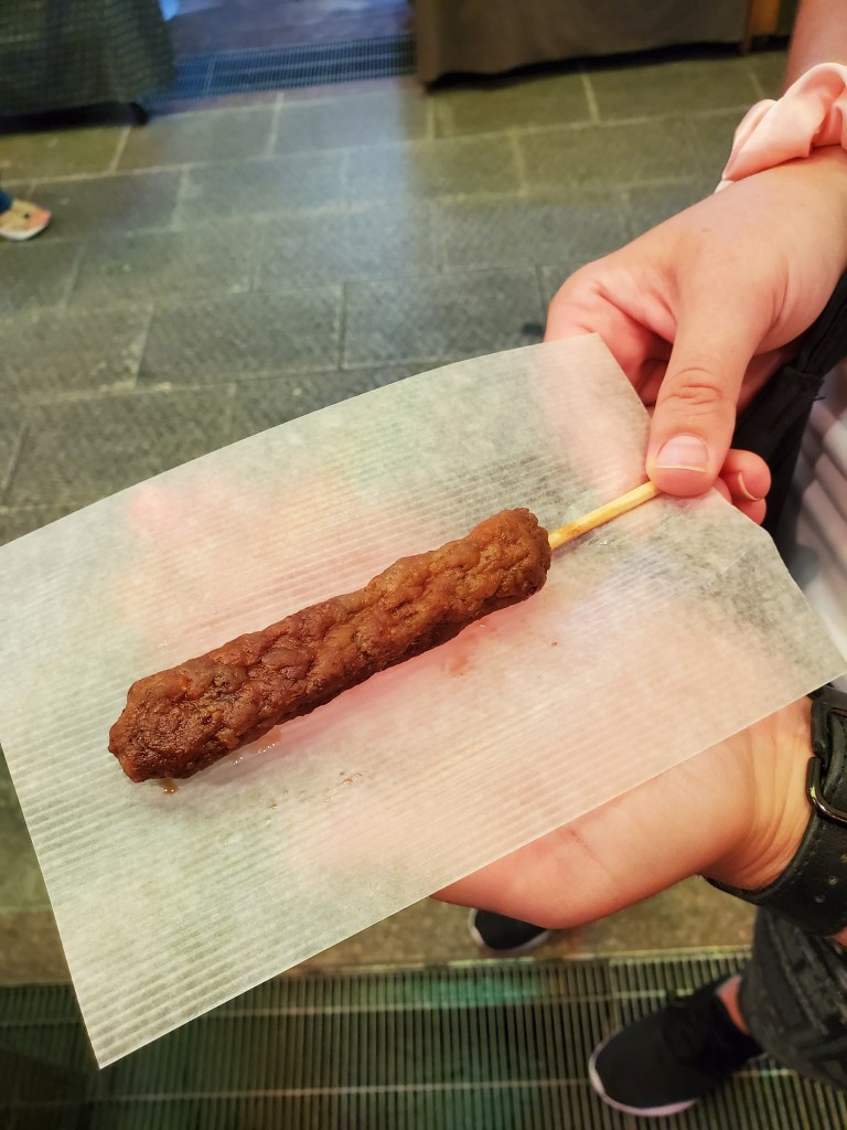 After we walked the rest of Nishiki market and grabbed a minced duck skewer, we settled on one final snack of a tempura minced octopus on a stick with scallions. This was unanimously our favorite of the meals on a stick for today.