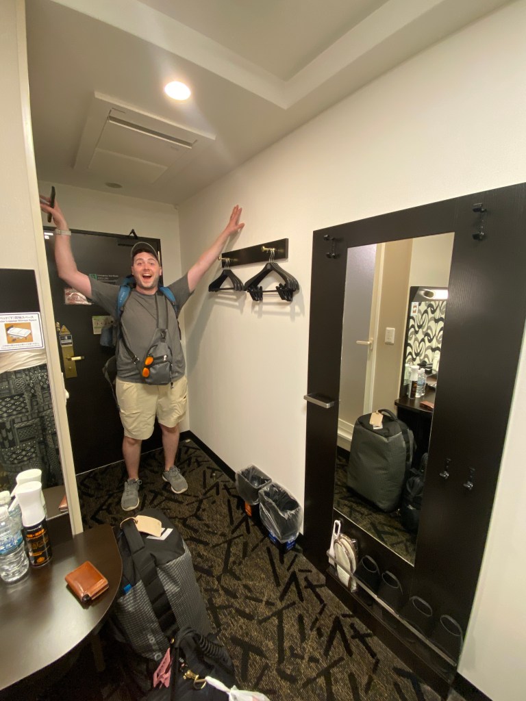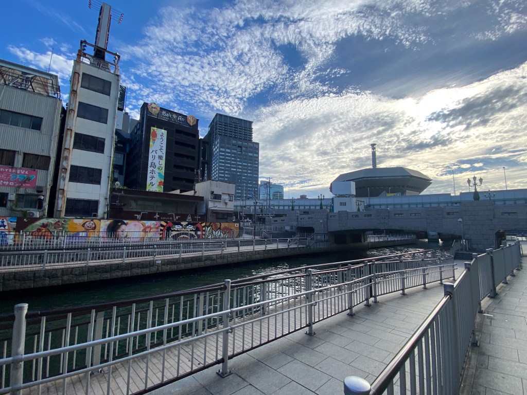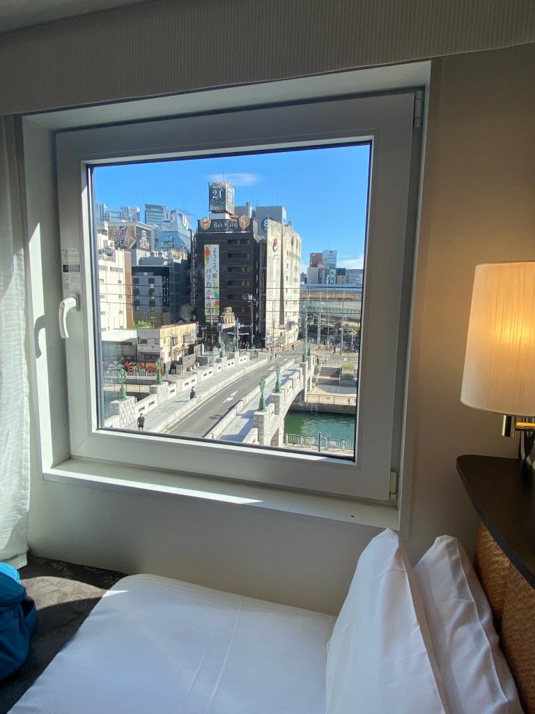 Additionally, we opened our curtains to see a fantastic view for the first time in Asia! It overlooked the Tombori River, and the start of the popular Dotonbori street of Osaka.