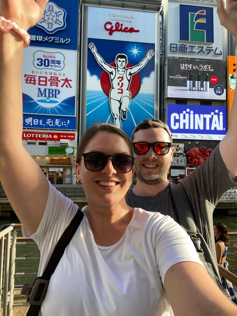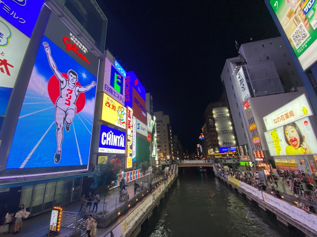Very tired from transit, we hung out, charging our devices for an hour or so before starting day 1 of exploring Osaka. We divided Osaka into north, central, and south regions for our three days here. As it was a relatively late start and we were staying near the central region, we decided to explore around this area. We checked Google Maps and found that everything in the central area was remarkably close, only being a few minutes from one destination to the next. We headed down to the river walk next to our hotel to the first destination: the Glico Running Man billboard. I won’t pretend to understand the significance, but this is the first attraction listed on almost every website regarding Osaka. We took some fun pictures and kept on walking.