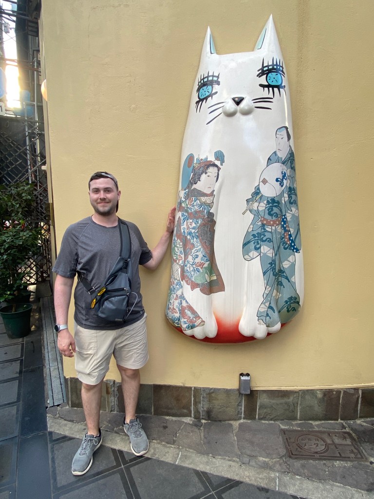 We passed familiar sites along the way, and took in the historic scenery of Kyoto for a final time. Along the way, Caitlyn found a vending machine that stocked a pineapple-ginger soda that David purchased and loved a few days prior, and we had been having a difficult time finding it since. We of course had to purchase two, one for now and one for later.