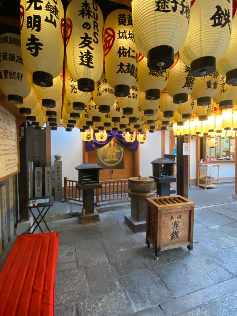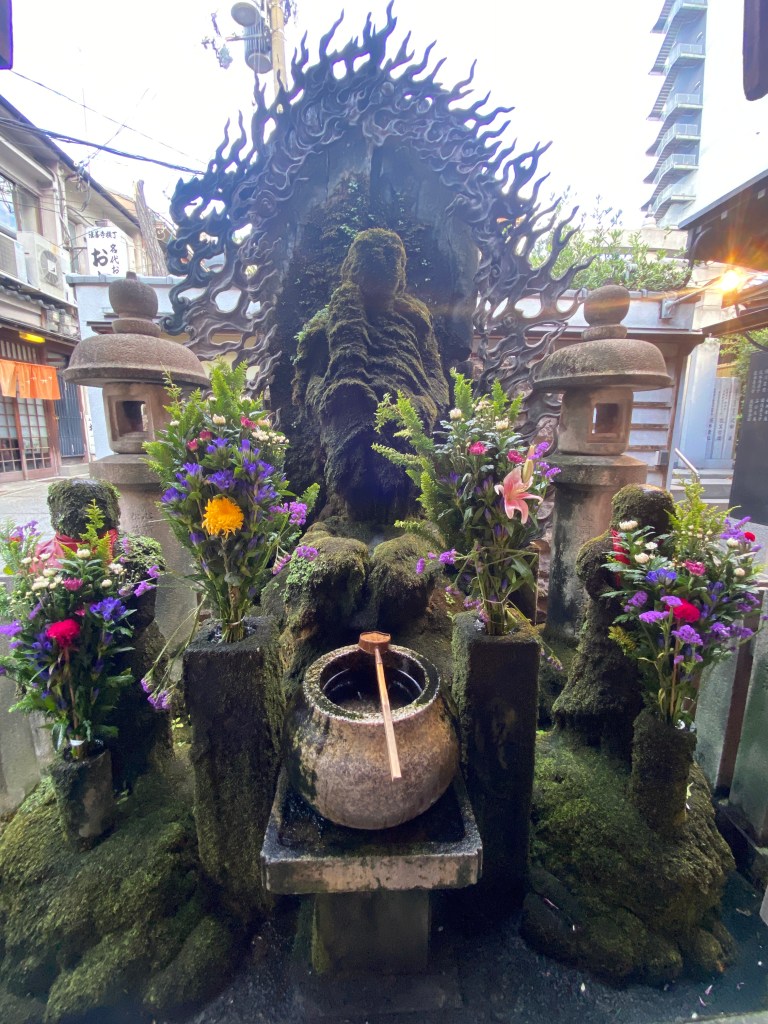 People walked around, drinks in hand, laughing and enjoying their Saturday. We felt a bit overwhelmed and decided to head off the main streets towards a shrine highly suggested in Osaka. The Hozenji temple, otherwise known as “The Moss Shrine”, is a tiny Buddhist temple just off of a main road, with a beautiful stone statue covered in moss from millions of visitors rituistically pouring water over top it. We watched people pray and pay respects to the shrine, and headed off to explore the Dotonbori region.