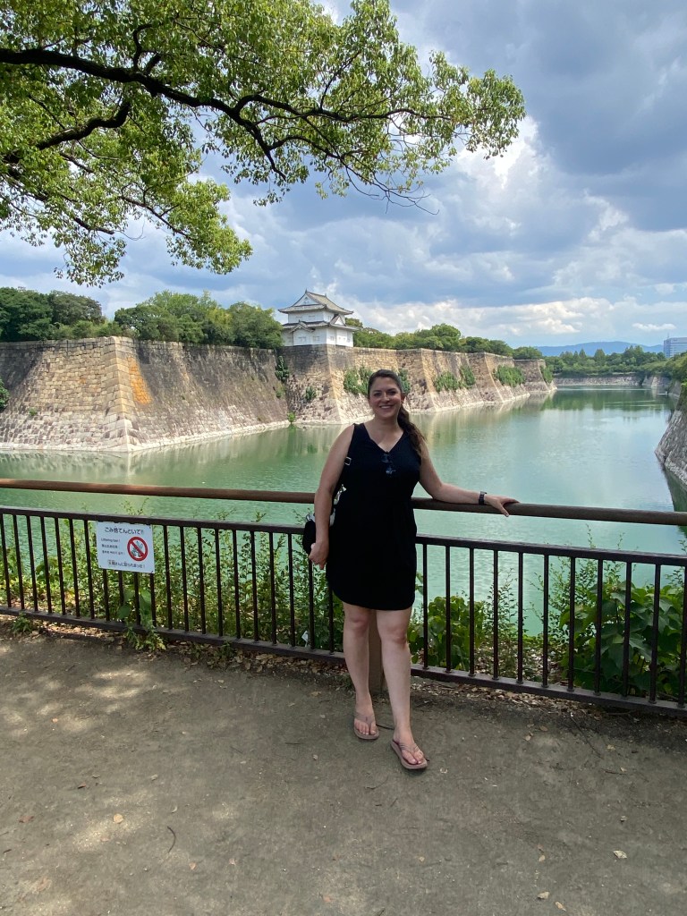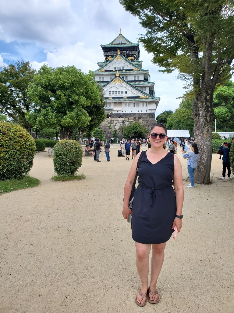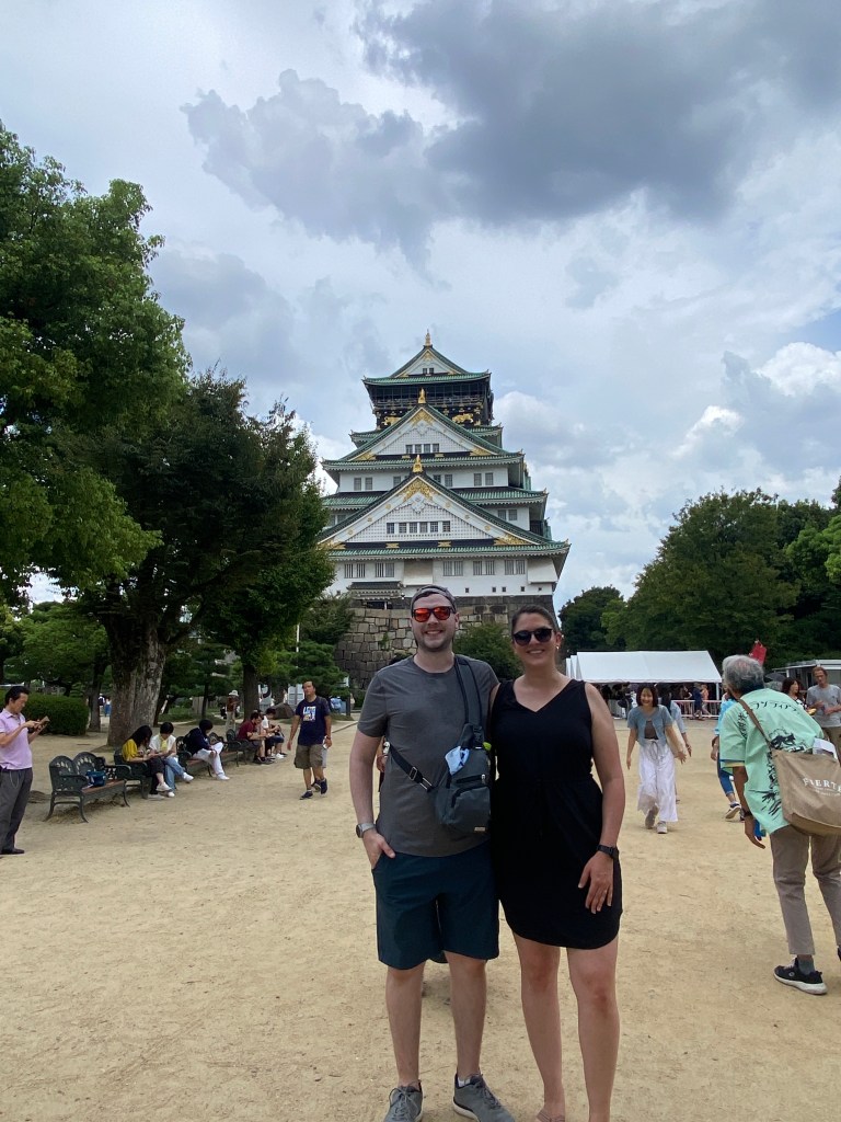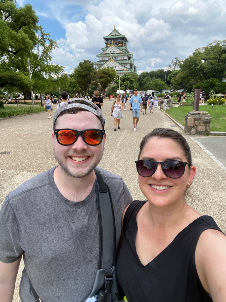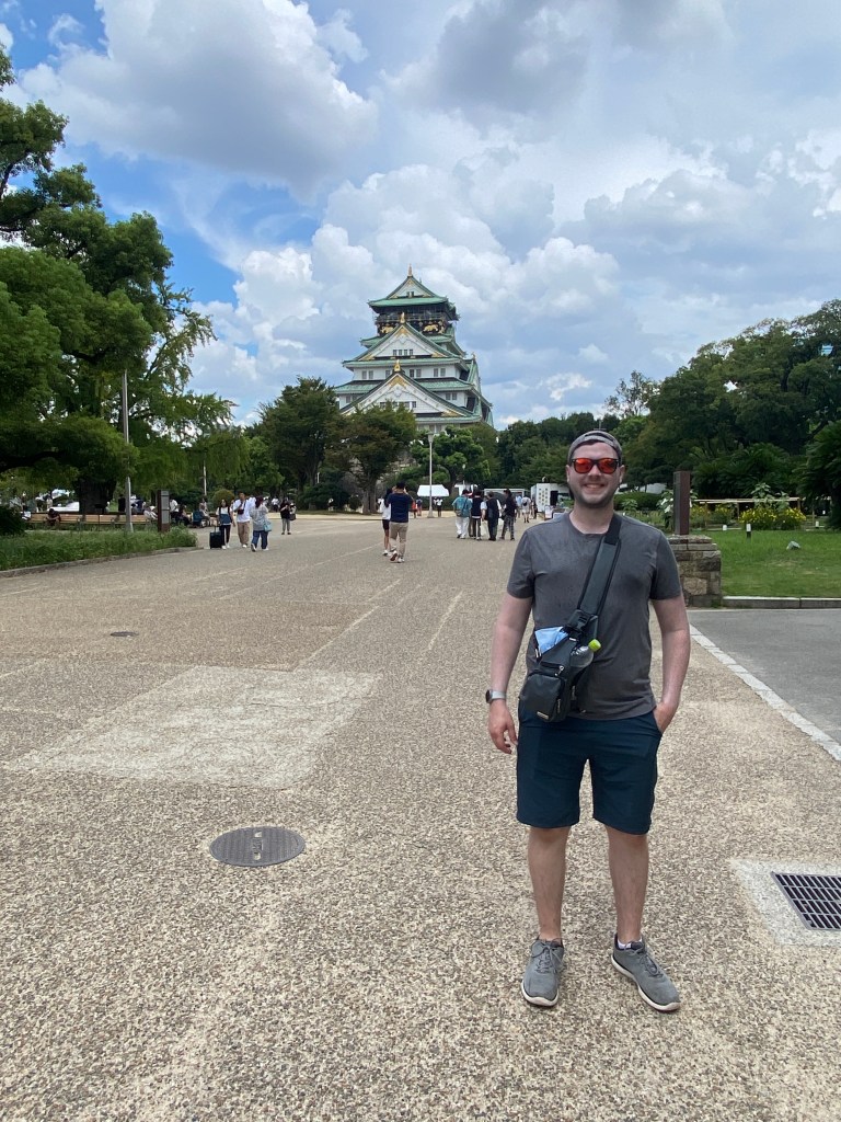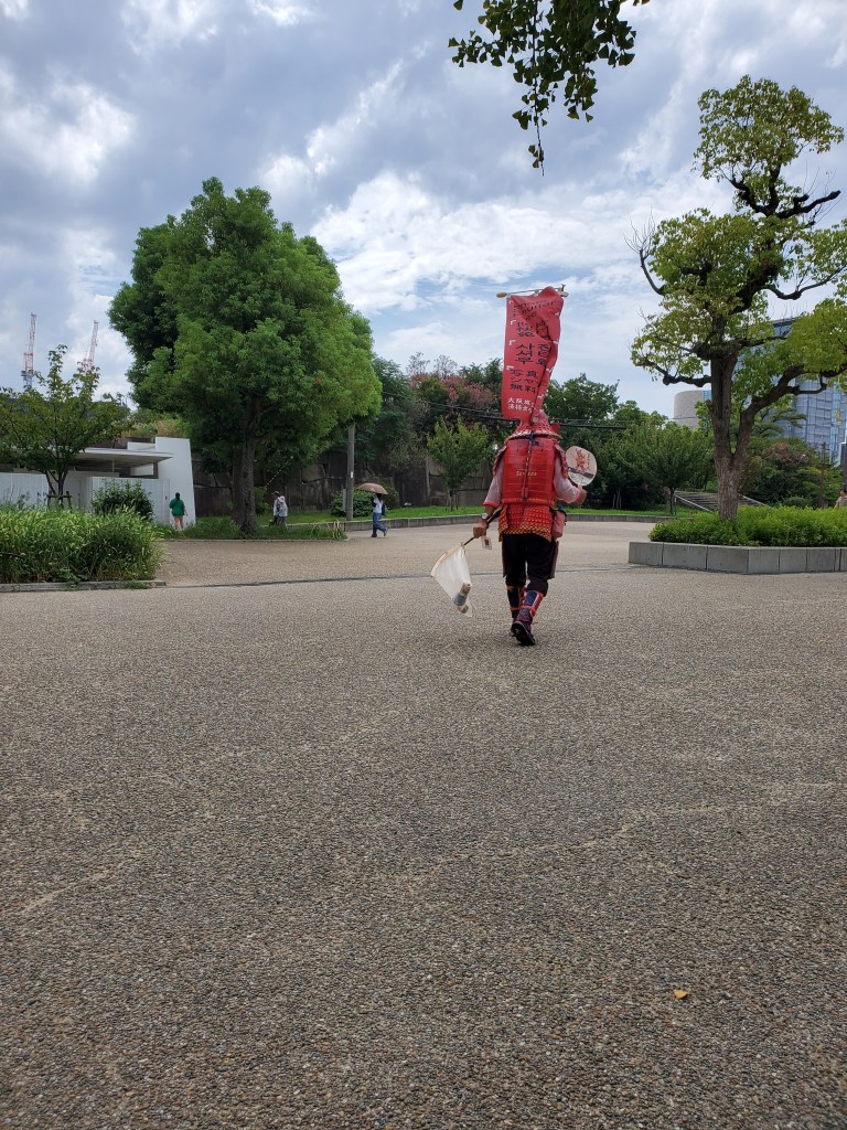 After getting a quick breakfast in, we made the walk towards Osaka Castle. We noticed a large crowd of people gathered near the entrance around a large structure, with an announcer speaking to the crowd. We hung around for a minute or two, but as we couldn’t understand what they were saying, decided to move on. Shortly after, we noted that people dressed up in traditional clothing were performing some kind of dance. As the sun was too strong, we kept moving.